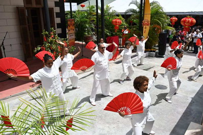 庙会现场张灯结彩、喜气洋洋。舞台上,中塞双语歌曲悠扬动听,太极扇表演刚柔相济,舞狮表演气势昂扬,中华传统文化与塞舌尔本土风情交融互鉴,现场掌声与欢呼声此起彼伏。